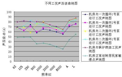 从数据中看出锅炉系统运行时,居民室内噪声源超出工业企业厂界噪声规范夜间一类区的标准,也不满足GB118-88民用建筑设计规范夜间三级的要求(40dBA,三级为最低要求)。严重影响居民的正常生活和休息。
