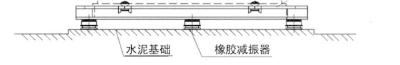 现有减振系统隔振性能较差,更换成隔振性能更好的橡胶隔振器,使得水泵的振动最小程度向结构传递。更换减振后安装示意图如图1所示:
