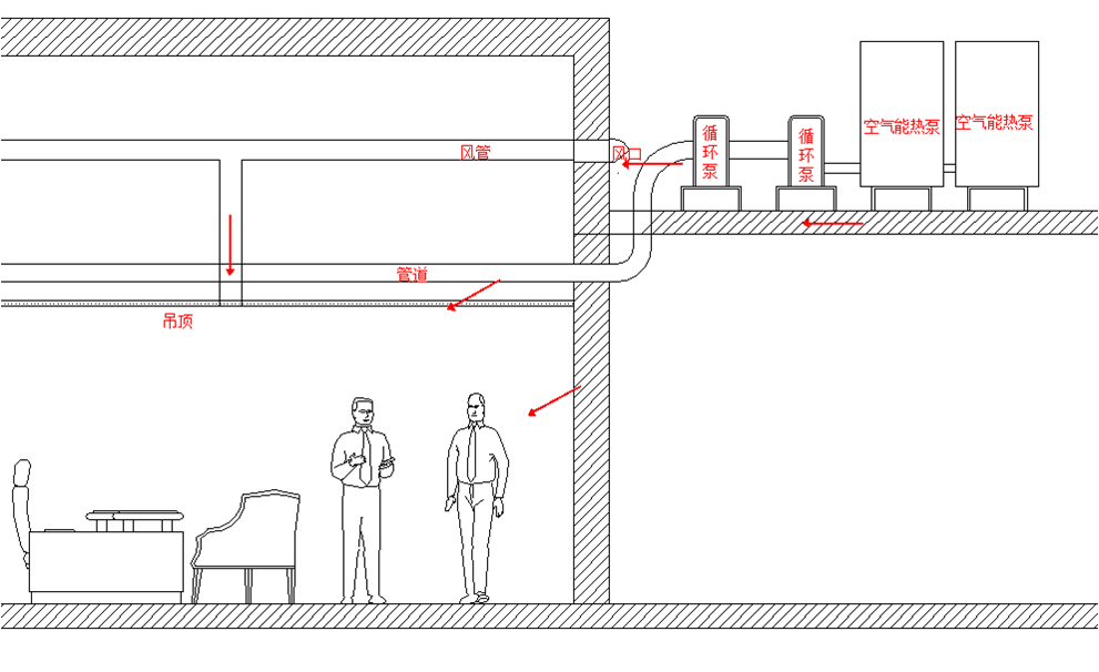 2)水泵与空气能热泵机组振动传递给建筑结构,引起结构的振动;