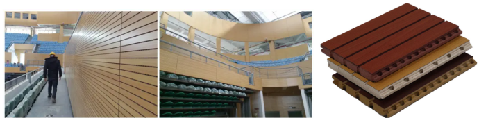 1、吸声材料,类似项目常用的吸声材料有:穿孔木槽板、穿孔铝板、砂岩板、无缝吸音吊顶、布艺软包等。